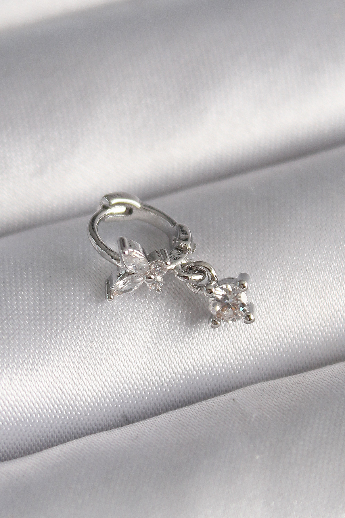 316L Çelik Gümüş Renk Zirkon Taşlı Kelebek Model Sallantı Detay Tragus Piercing