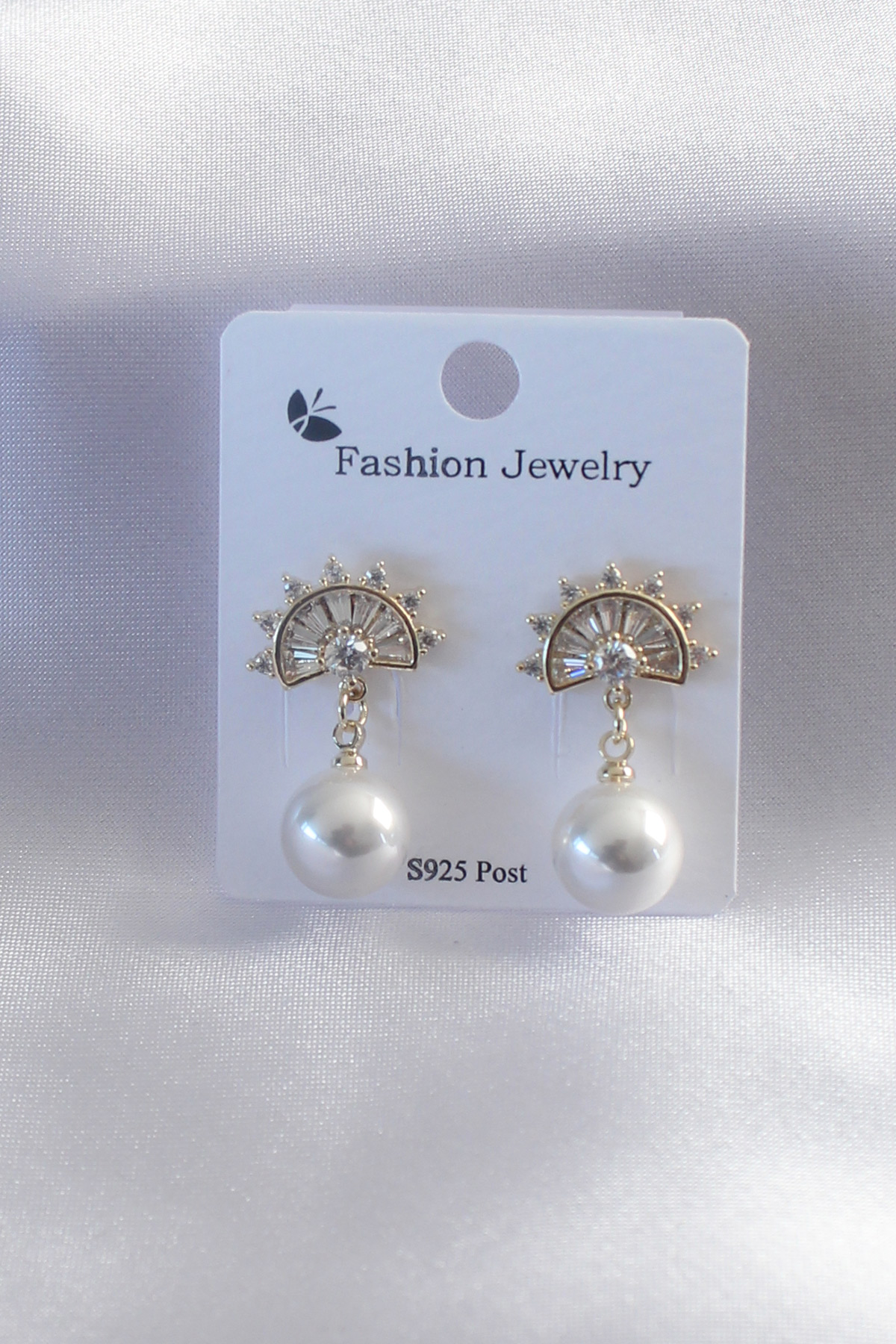 Gold Renk Zirkon Taşlı İnci Sallantı Model Kadın Küpe